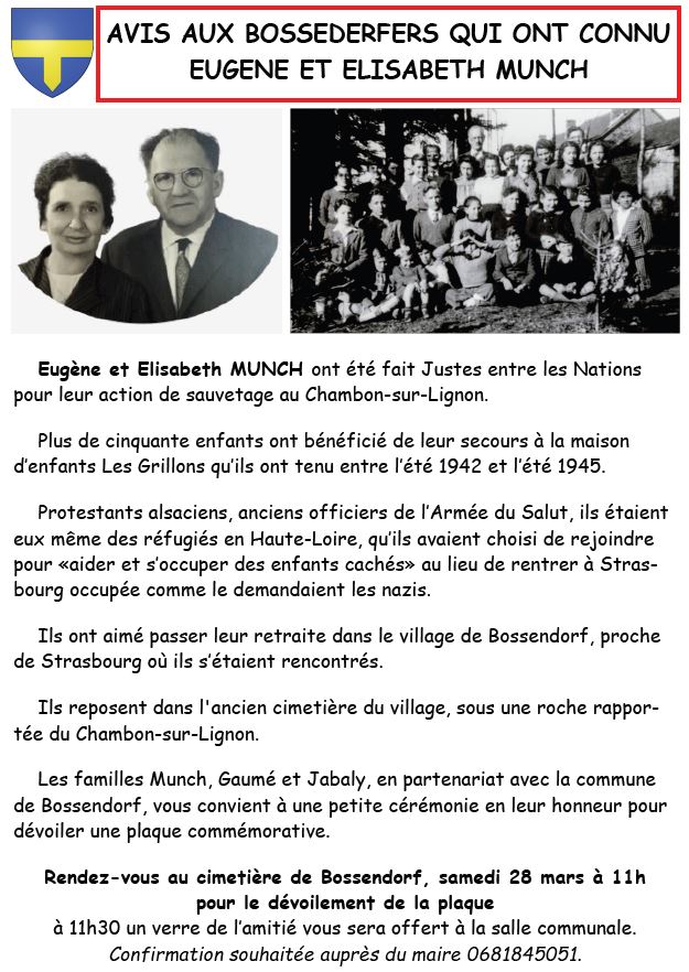 Bossendorf > Actualités > Eugène et Elisabeth MUNCH ont été fait Justes